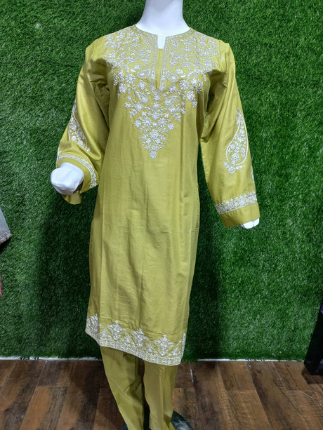 Agha Noor | Green Embroidered 2 Piece Suit | Women Branded Kurta | Large | Brand New