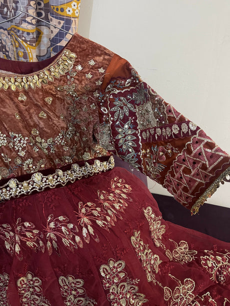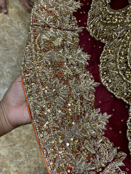 Graceful Peach Barat maxi and maroon dupatta | Women Bridals | Medium | Worn Once