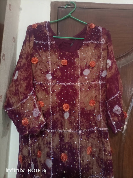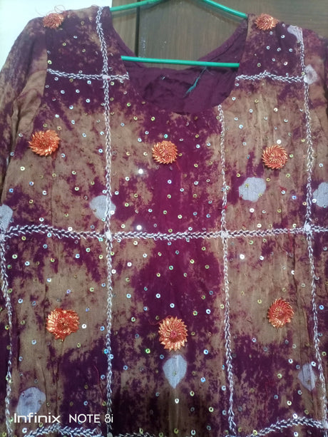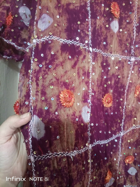Three Piece Chunri Chiffon Suit | Women Locally Made Formals | Medium | Worn Once