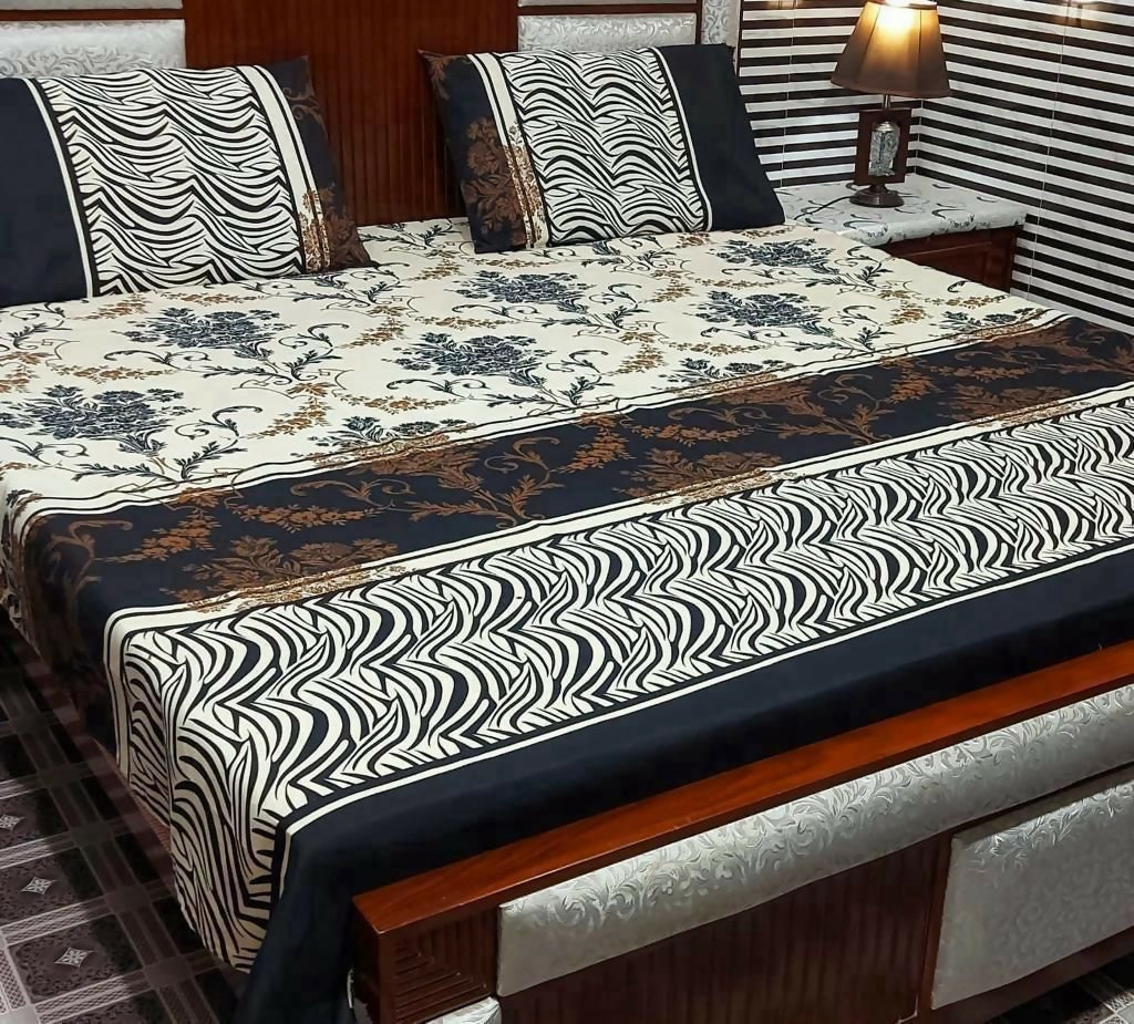 | MATERIAL & MEASUREMENT | BedSheet KING SIZE bedsheet* *(3.25) Mtr bedsheet* *3 Pieces crystal* Printed bedsheet* (1)Flat Sheet* *90*95” (238*248cm)* *With* *(2) Pillowcases* *19*29” (50*75cm)* Colour Guaranteed |