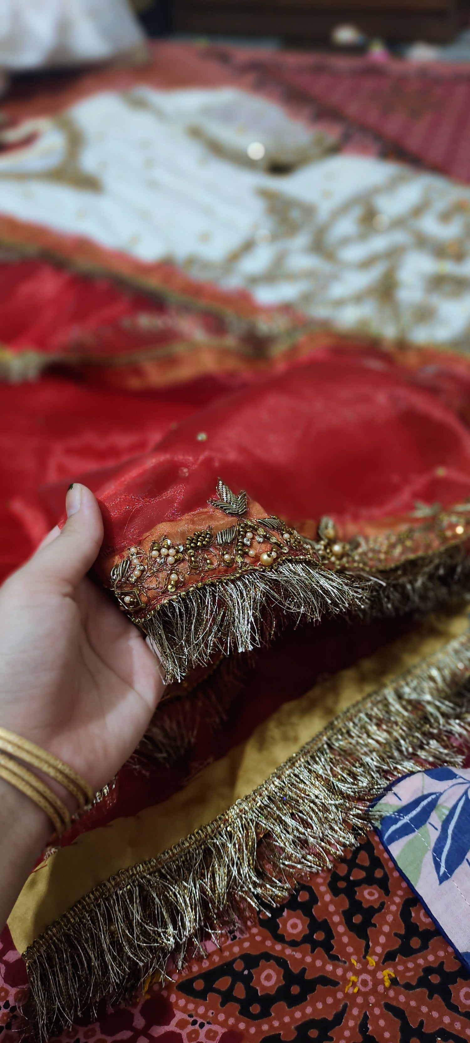 Fabric / Material: Net shirt and sharara with Organza Duppatta