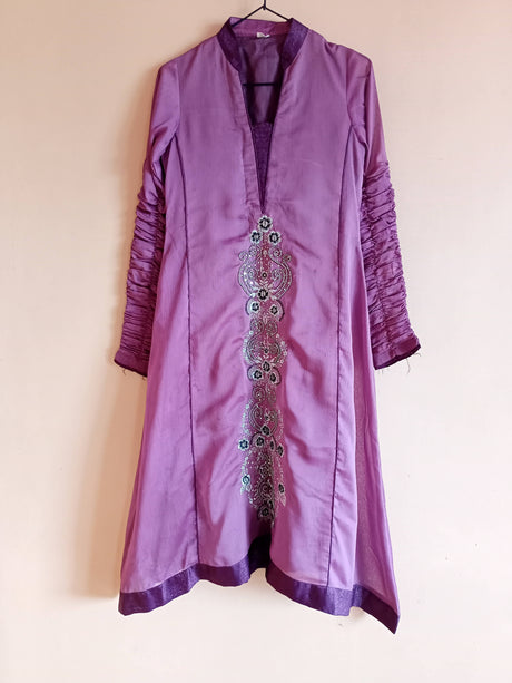 Magenta Purple Banarsi Long Frok | Women Locally Made Formals | Small | Preloved