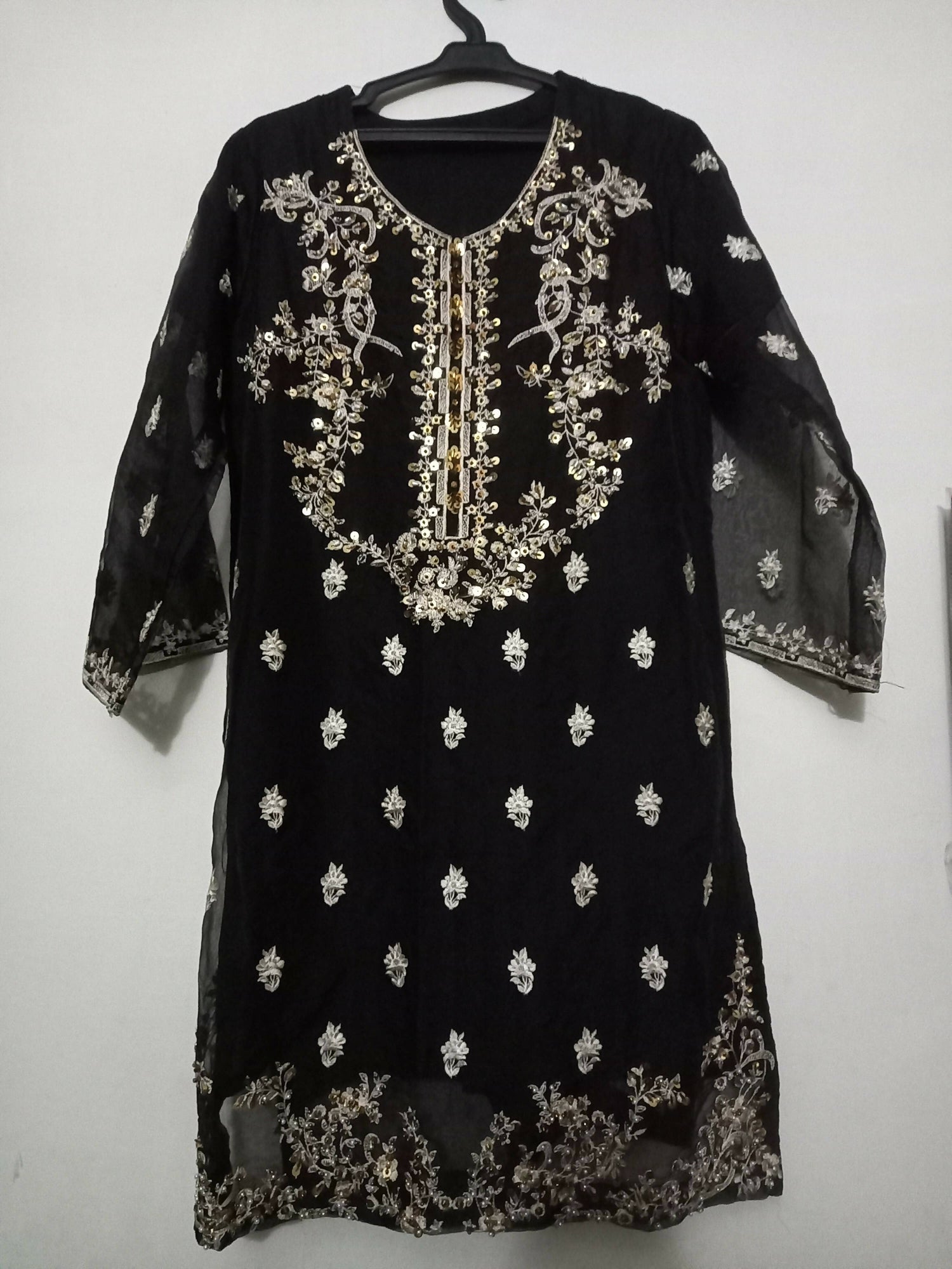 Organza Black Kurta with organza dupatta | Women Locally Made Kurta | Medium | Worn Once is backordered and will ship as soon as it is back in stock.