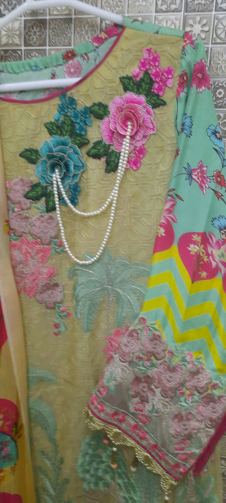 Chiffon Embroidered Kurta With Dupatta | Women Locally Made Formals | Large | Preloved