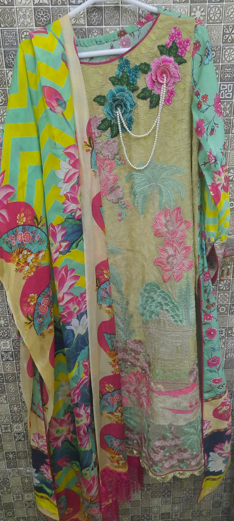 Maria B | Beautiful Yellow 3 Pc Suit | Women Branded Formals | Large | Worn Once