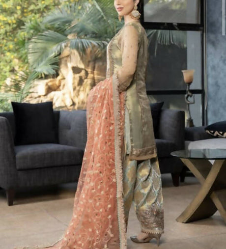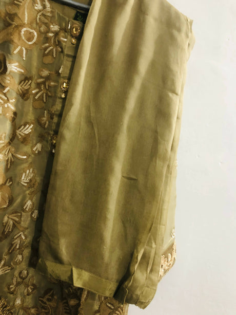 Bareeze | Olive Green 3 Pc Suit | Women Branded Formals | Small | Worn Once