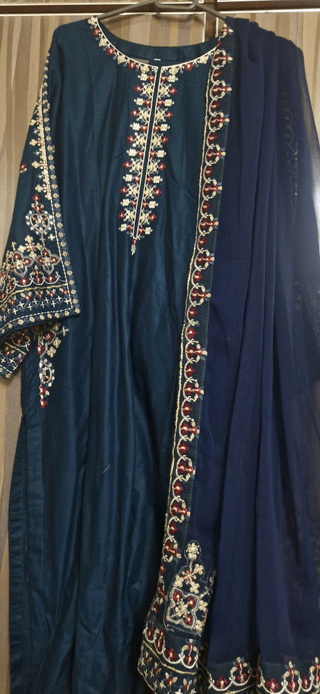 Net Heavy Embroided Formal Suit | Women Locally Made Formals | Medium | Preloved