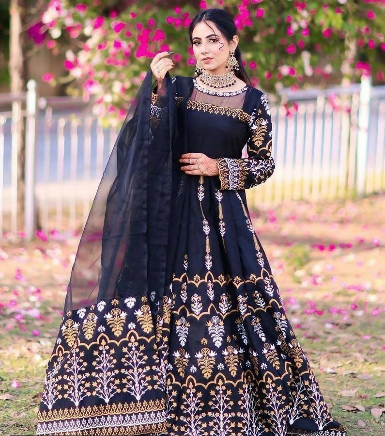 | MATERIAL & MEASUREMENT | • Shirt Fabric: Silk • Pattern: Embroidered • Neck Type: Round Neck • Available Sizes: Medium • Number Of Pieces: 3 Pcs • Color: Black • Package Includes: 1 x Maxi, 1 x Dupatta, 1 x Trouser • Flare Length: 78 Inches • Shirt Length: 50 Inches • Shirt Chest: 21 Inches • Shirt Shoulder: 15 Inches • Arm Length: 19 Inches • Trouser Length: 37 Inches • Trouser Waist: 21 Inches • Trouser Hip: 24 Inches • Dupatta Dimensions: 3 Yards • Note: There might be an error of 1-3 cm due to manual measurement, and slight color differences may occur as a result of varying lighting and monitor effects. • Product Code: MZ92500000209SIGS |