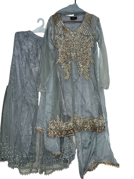 Rs.1,499.00Rs.2,500.00Unit price /Unavailable Champagne Gold Embroidered Gharara shirt Set | Women Locally Made Formals | Large | New