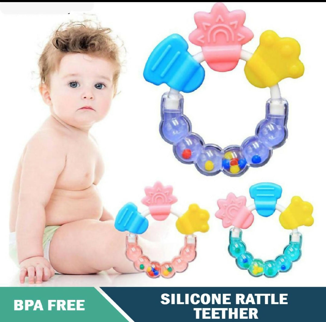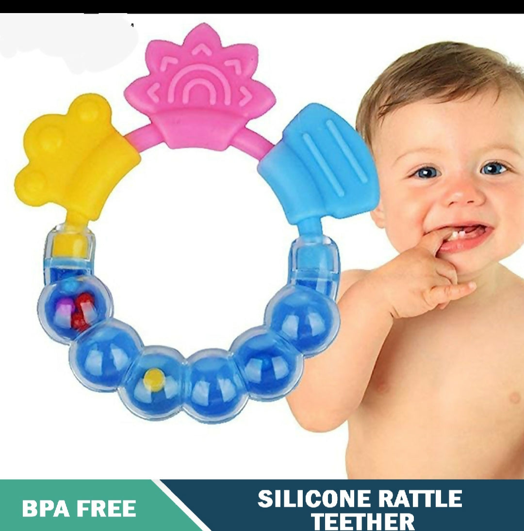 Dual Function: Combines rattle and teething toy for comprehensive relief.