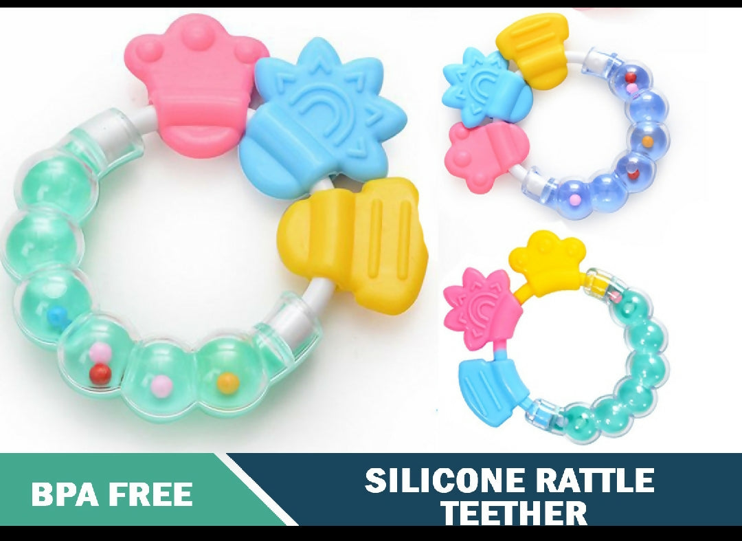 | MATERIAL & MEASUREMENT | Dual Function: Combines rattle and teething toy for comprehensive relief. Safe & Non-Toxic: Made from BPA-free, food-grade silicone. Engaging Rattle: Stimulates and entertains while soothing. Easy to Clean: Dishwasher-safe for convenience. Perfect for Infants: Suitable for babies aged 0-12 months. |