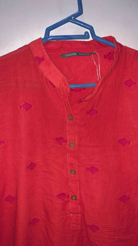 Printed Red Tunic | Women Locally Made Kurta | Large | Worn Once