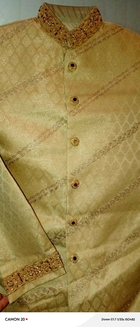 Golden Sherwani | Men Shalwar Kameez | Medium | Worn Once