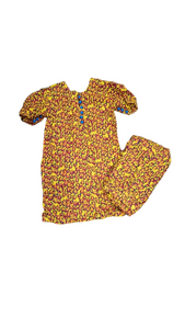 | MATERIAL & MEASUREMENT | Size: Small (3-4 years) Multi orange color Trouser size: Length 19" Waist 9" Shirt size: Length 20" Chest 11" Sleeves 4.5" Peach Shirt size: Length 16.5" Chest 11" Trouser size: Length 17" Material: Lawn |