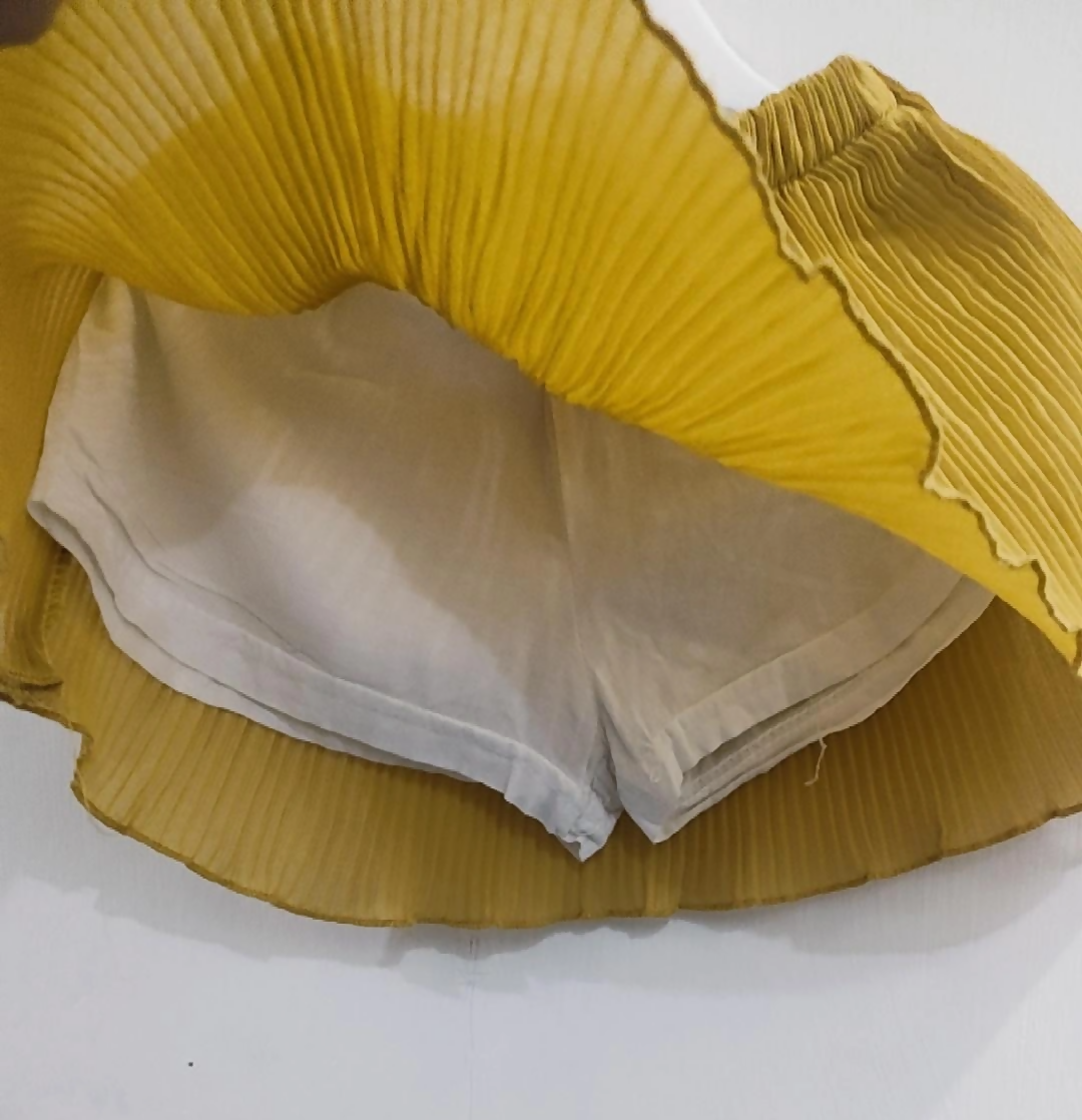 | MATERIAL & MEASUREMENT | Size: Length 9" Waist 7.5" (one side) Flair 23" (one side) Fabric: Chiffon |