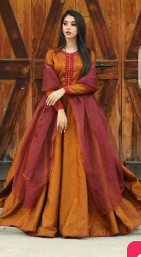 Shehninas| Brown Rawsilk Maxi | Women Branded Formals | Medium | New