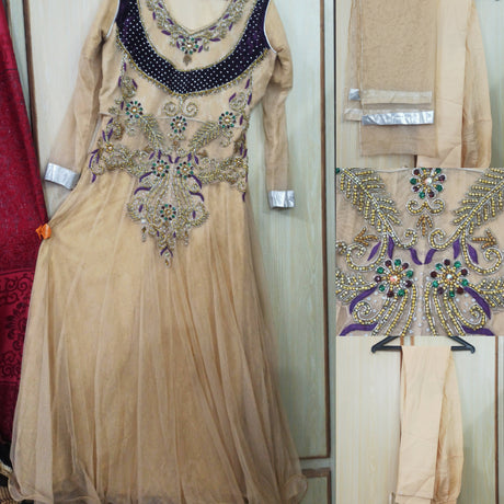 Cream Skin Embroidered Net Maxi | Women Frocks & Maxis | Medium | Worn Once