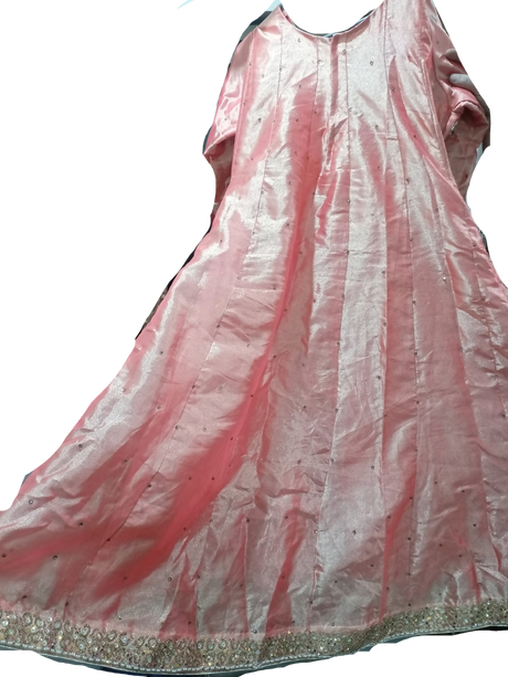 Peachy Pink Heavy Embroiderd Organza Frock | Women Locally Made Formals | Large | Preloved