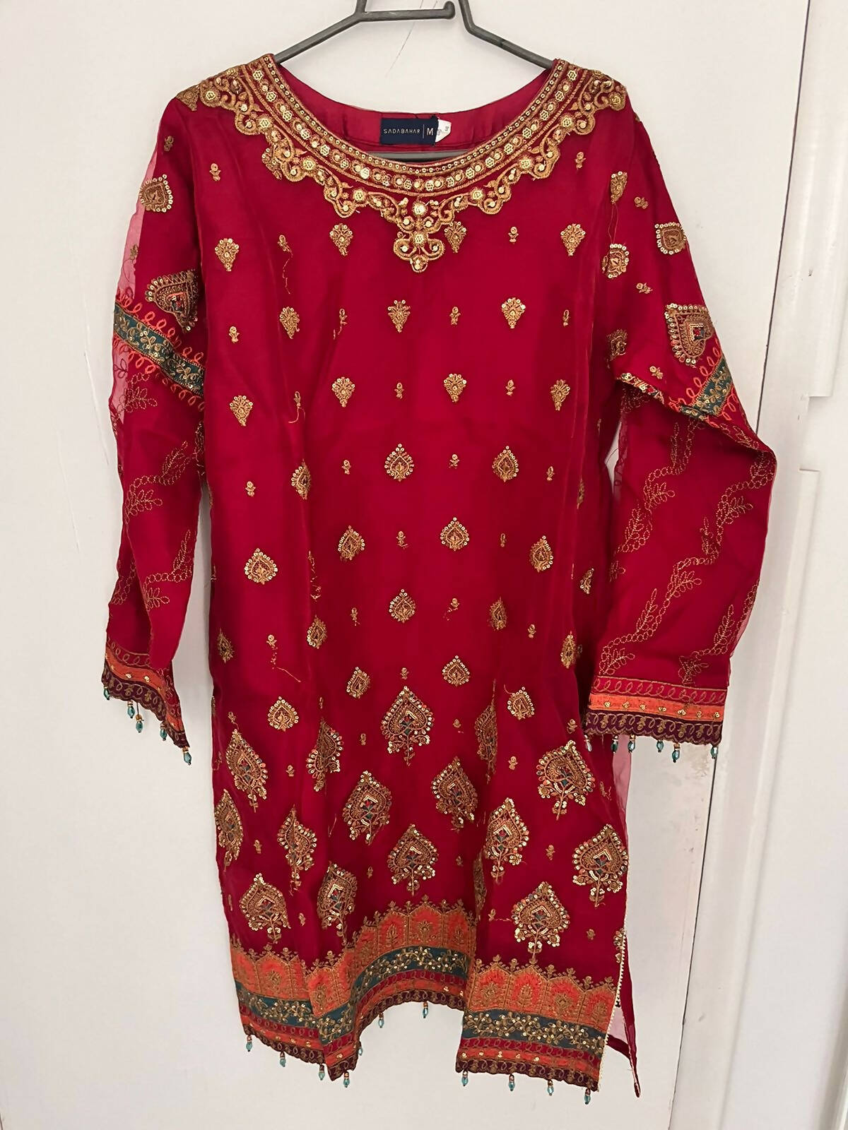 Fabric Material: Shirt Organza Heavy Embroidered With Embroider and Sequins All Over Dupatta Embroidered Organza With Sequins Shalwar Self Made Pakistani Raw silk Shalwar