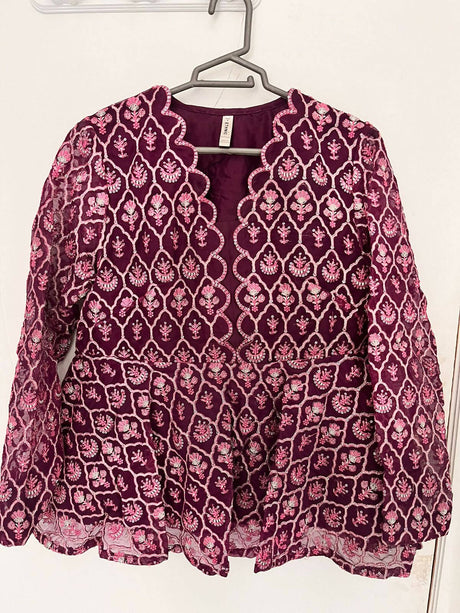 Magenta Purple Banarsi Long Frock | Women Locally Made Formals | Small | Preloved