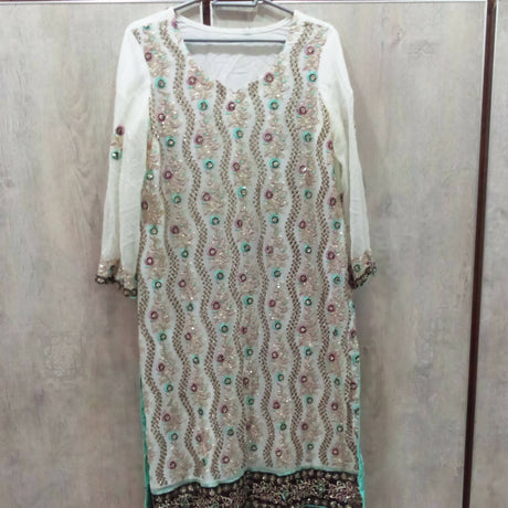 Haseen White Formal Suit | Women Locally Made Formals | Medium | Worn Once