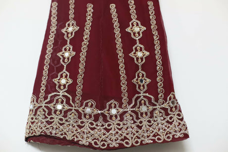 Rs.4,999.00Rs.18,000.00Unit price /Unavailable Malik Designers | Chiffon Maroon Dress | Women Branded Formals | Medium | Worn Once