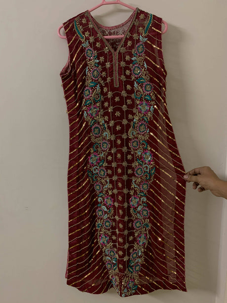Stunning Maroon Frock with Sharara | Women Locally Made Formals | Medium | Worn Once