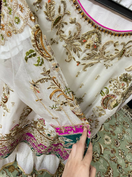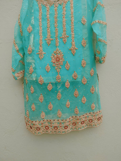 Fancy embellished 3 PC A Line Shirt & Sharara | Women Formals | Medium | New