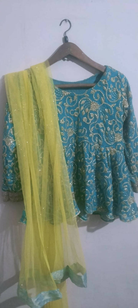 Rs.2,100.00Unit price /Unavailable3 PC Fancy Sea Green Peplum with Gharara | Women Locally Made Formals | Medium | New