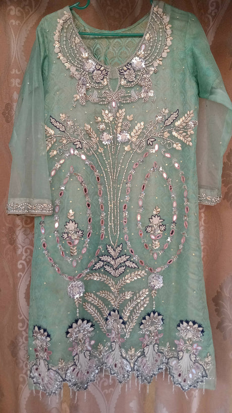 Sheesha Embroidered Shirt with Gharara | Women Locally Made Formals | Medium | Worn Once