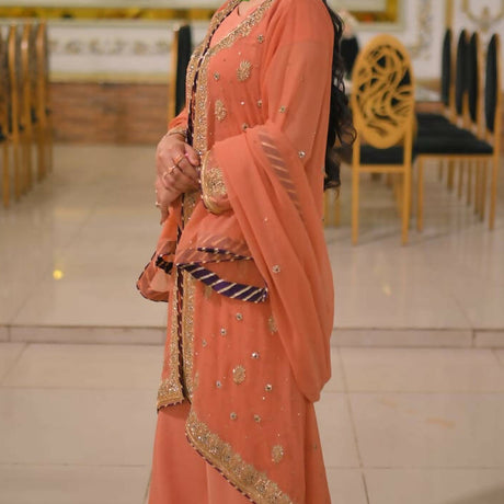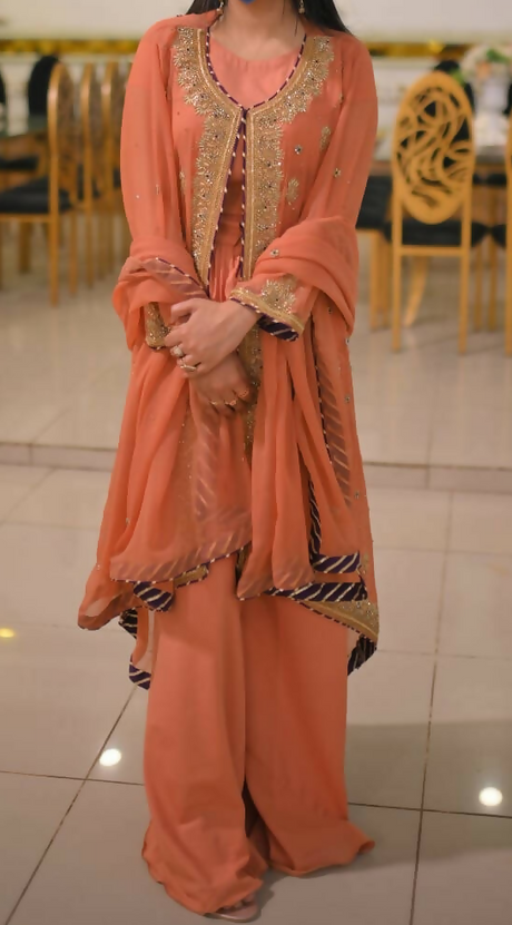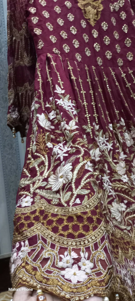Embroidered Maxi with Banarsi Sharara | Women Locally Made Formals | Small | Preloved