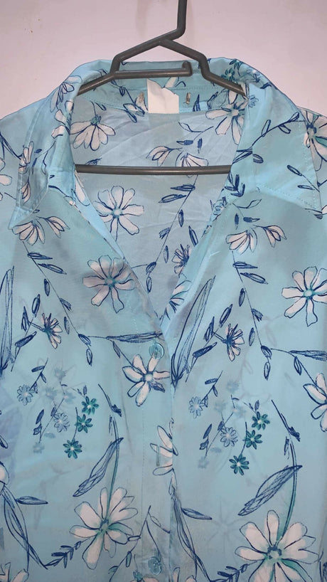 Sky Blue Floral Baggy Shirt stylish Western Top | Women Tops & Shirts | XLarge | Preloved
