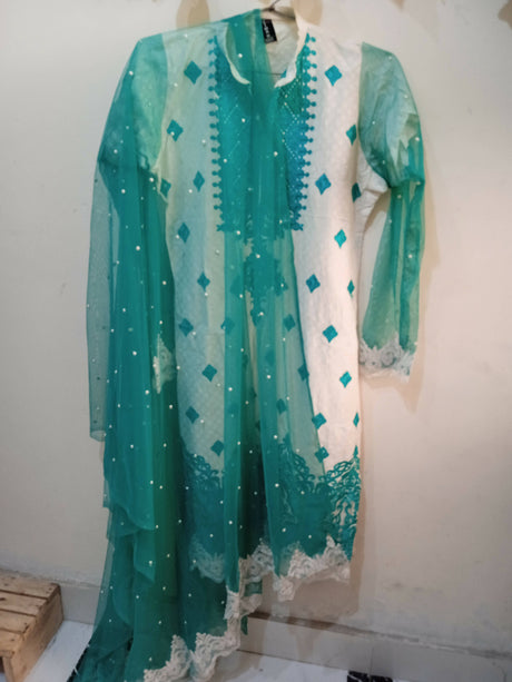 3 PC Embroidered sitara work Suit | Women Locally Made Formals | Small | Worn Once