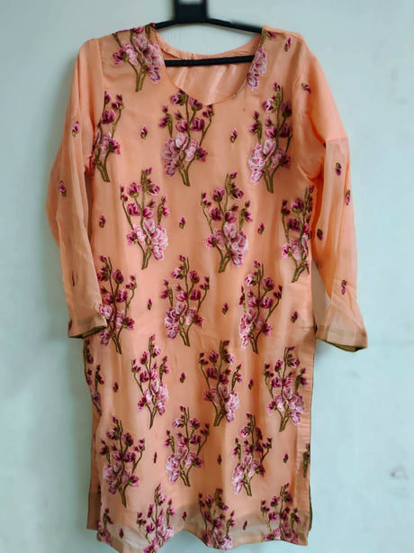 3 PC Peach Embroidered Suit | Women Locally Made Formals | Medium | Worn Once