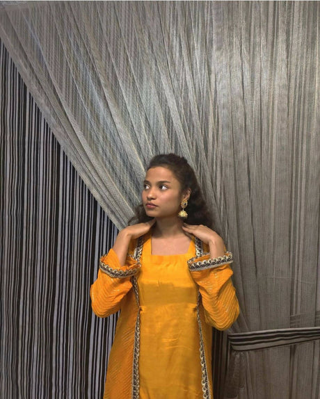 3 PC Long Mustard Coat | Women Locally Made Formals | Medium | New