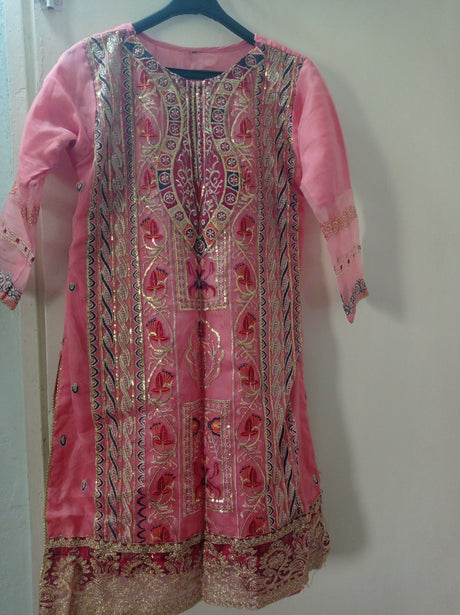 3 Pcs Embroidered Short Frock | Women Formals | Small | Preloved