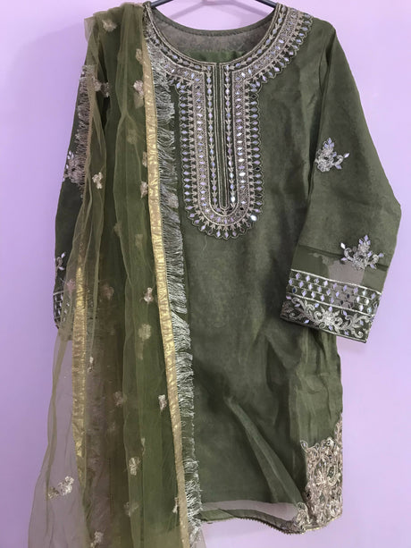 3 PCS women;s Stitched organza suit ( Size: M ) | Women Frocks & Maxis | New