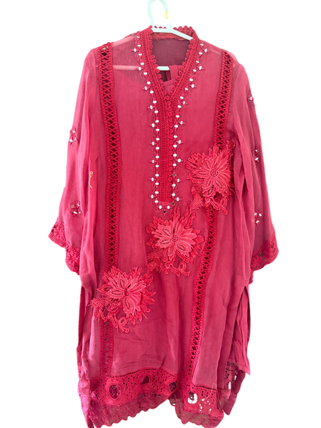 Pink Full Tilla Work Fancy Suit | Women Locally Made Formals | Medium | Worn Once