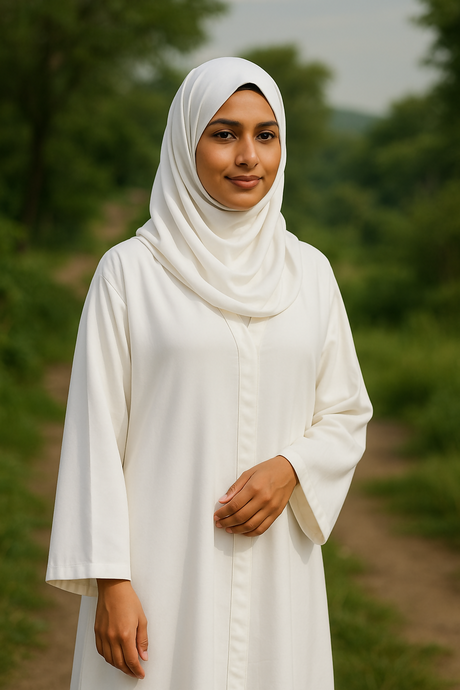 White Front Open Abaya with Stole | Women Accessories | Large | Brand New