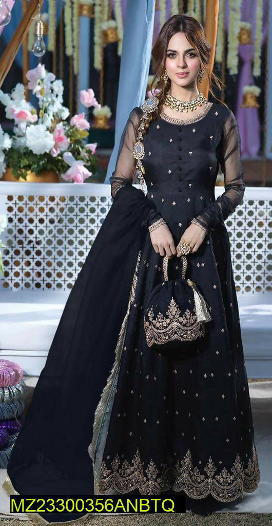 3 PC Chiffon Silk Frock | Women Frocks & Maxis | Medium | New is backordered and will ship as soon as it is back in stock.