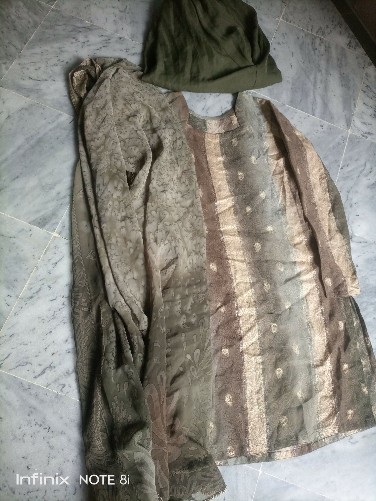 | MATERIAL & MEASUREMENT | Chiffon Shoulder:16 Chest:19 Back:16 Length:38 Trouser length:40 2 yards chiffon dupata |