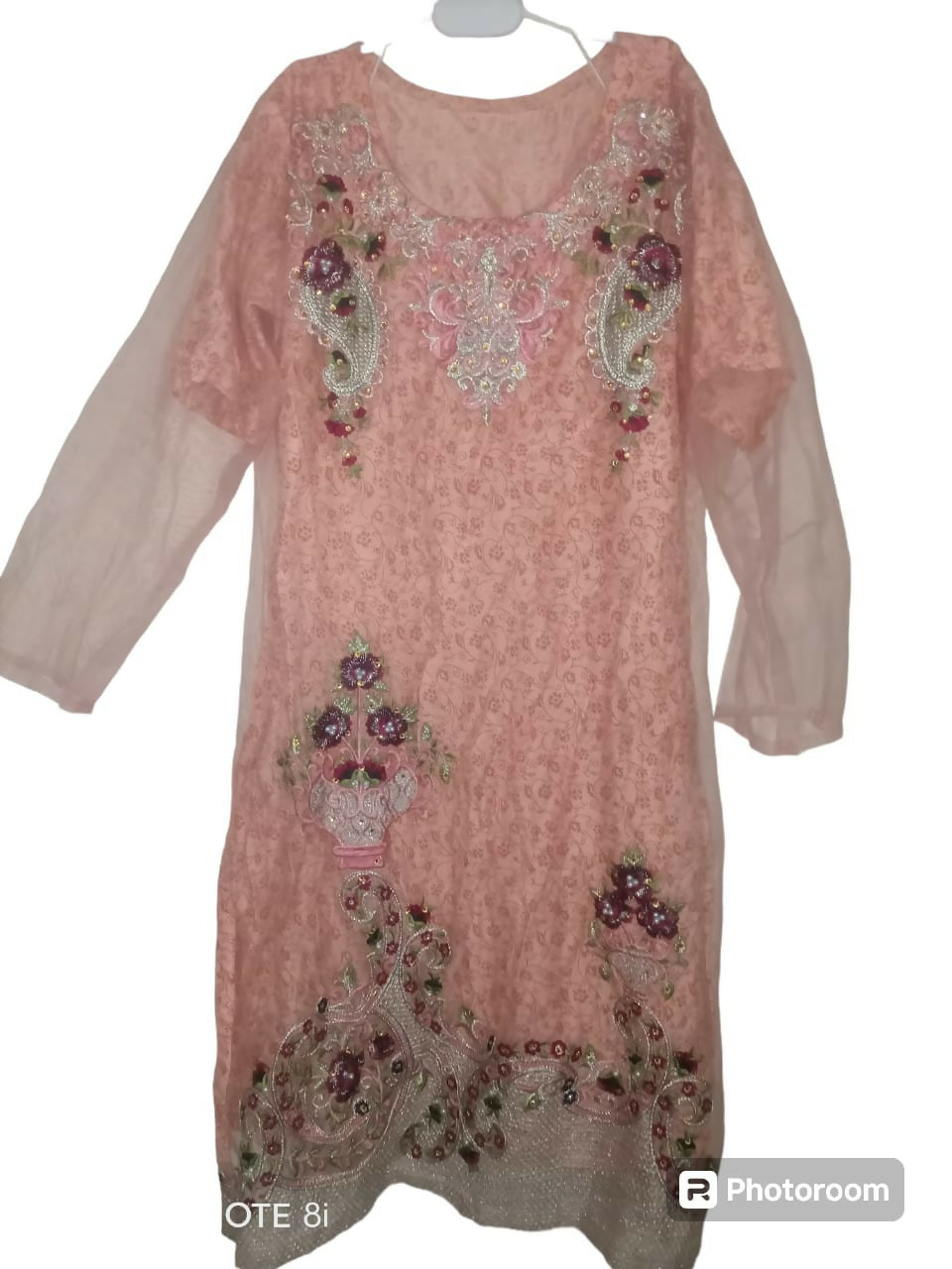 3 PC Peach Embroidered Suit | Women Locally Made Formals | Medium | Worn Once
