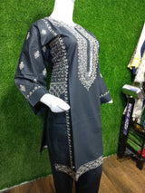 | MATERIAL & MEASUREMENT | Hight quality lawn Large Measurements: Chest: 19(small) 21(medium) 22(large) Length 40 Shoulder 16 Trouser length 36 |