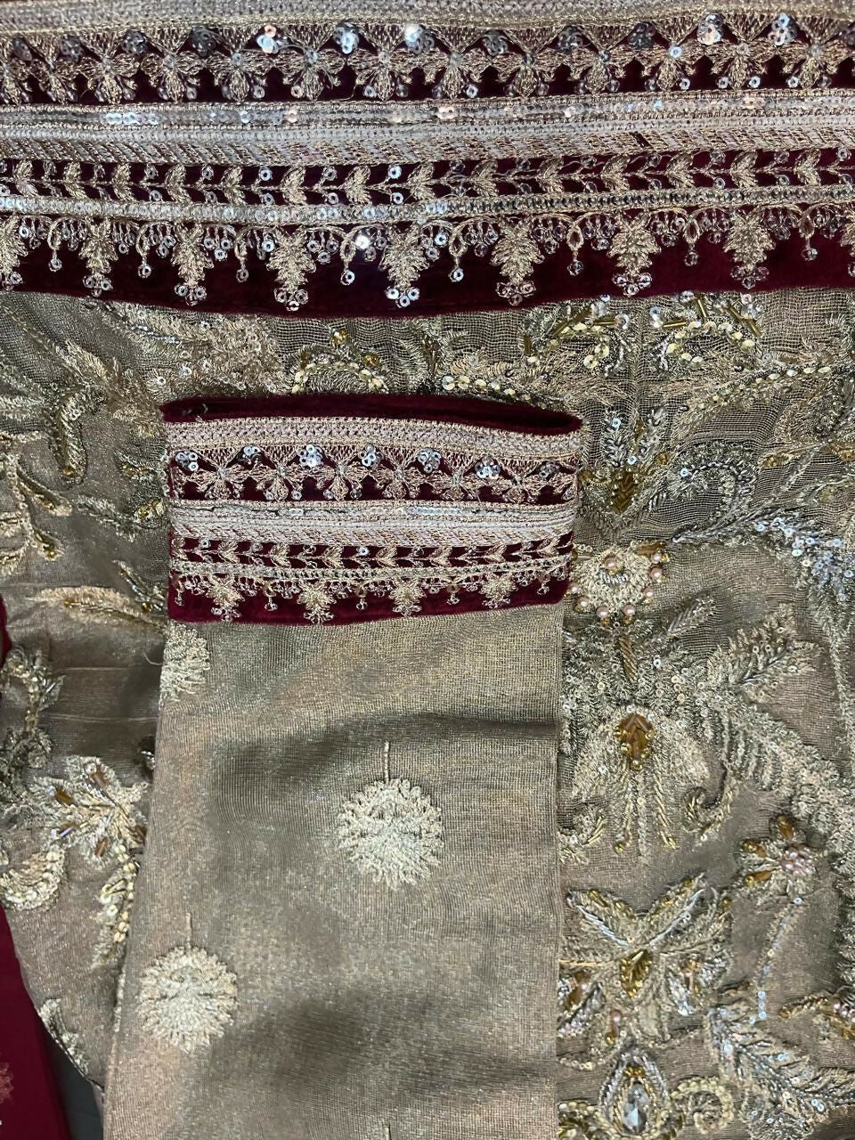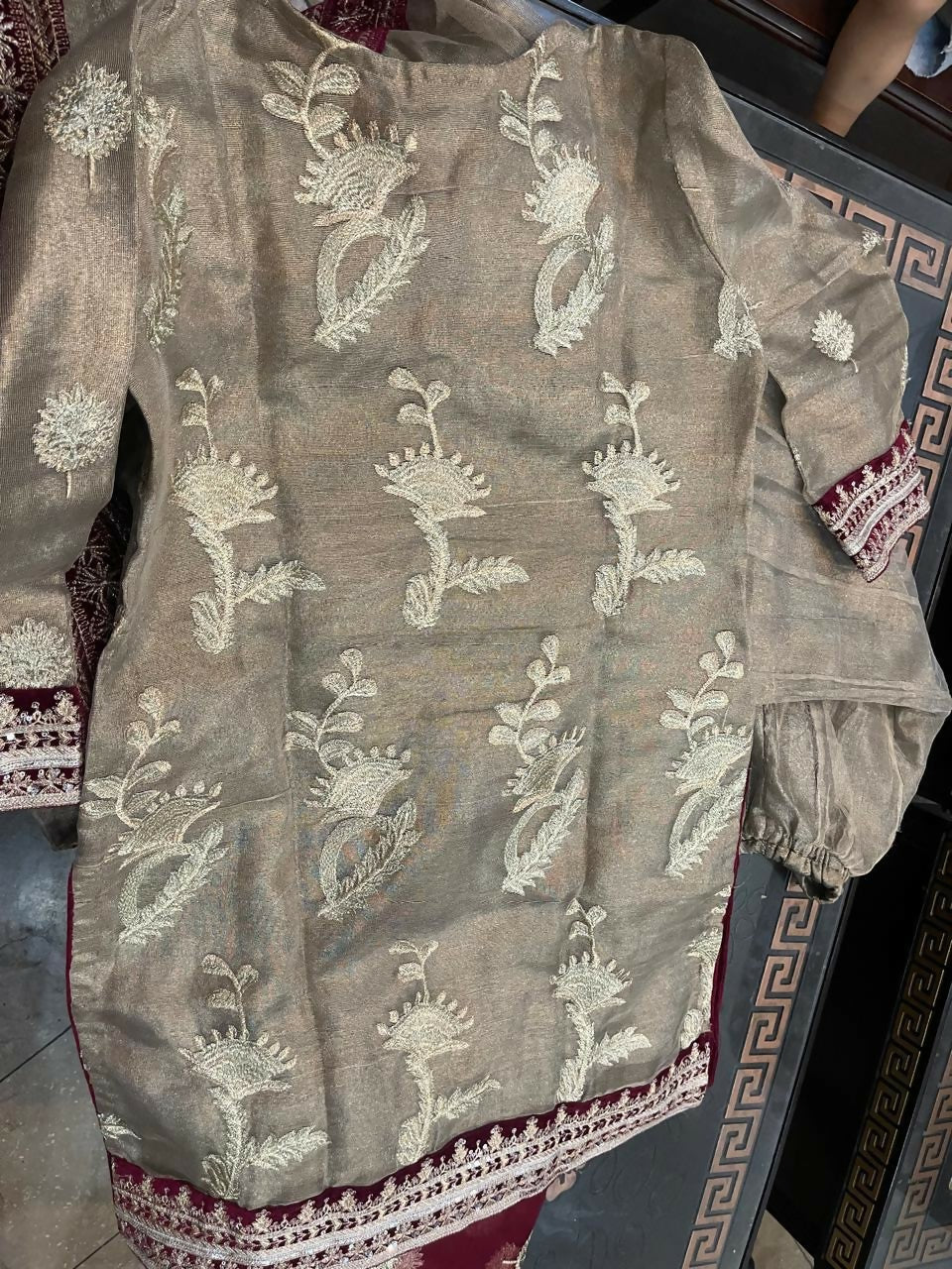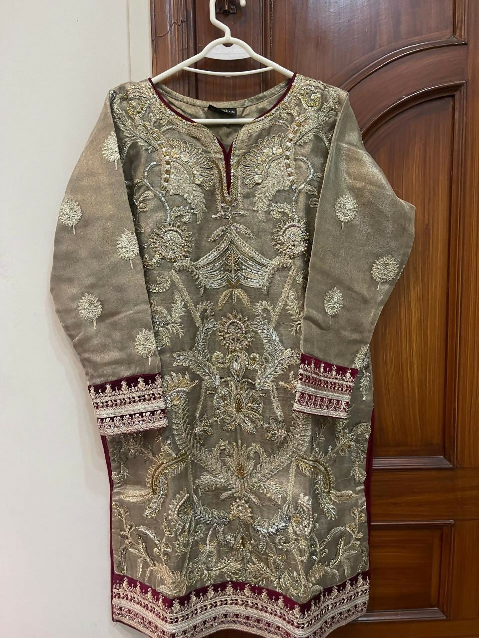 | MATERIAL & MEASUREMENT | Fabric: Mehsuri Measurements Chest: 23 Length: 46 Sleeves: 20 |
