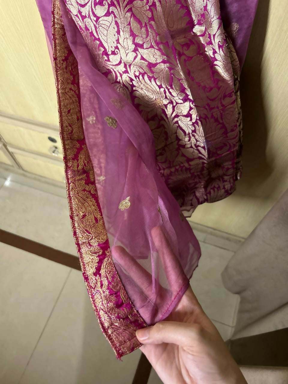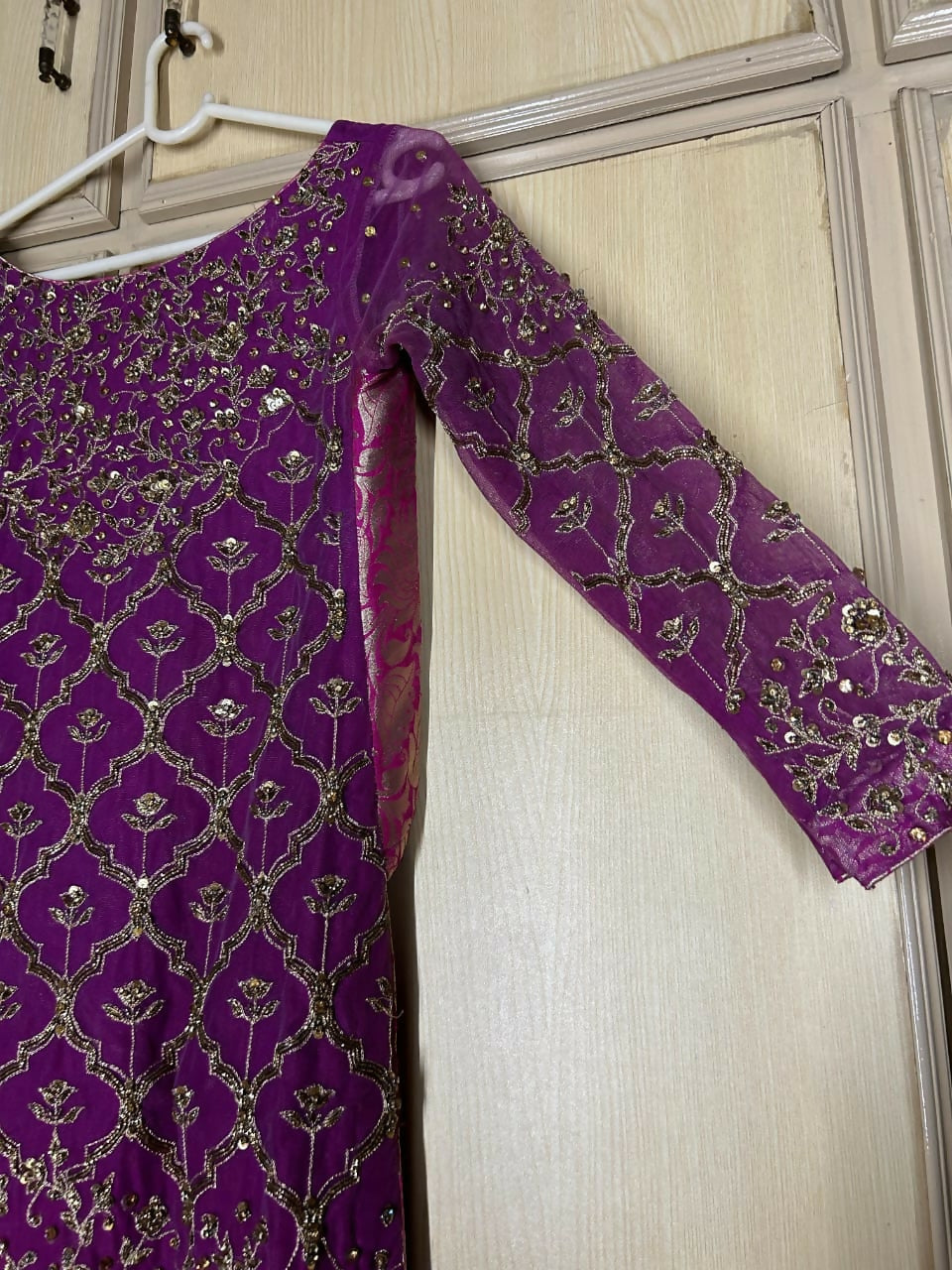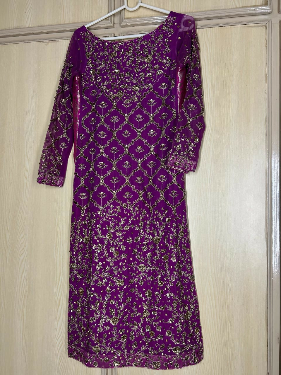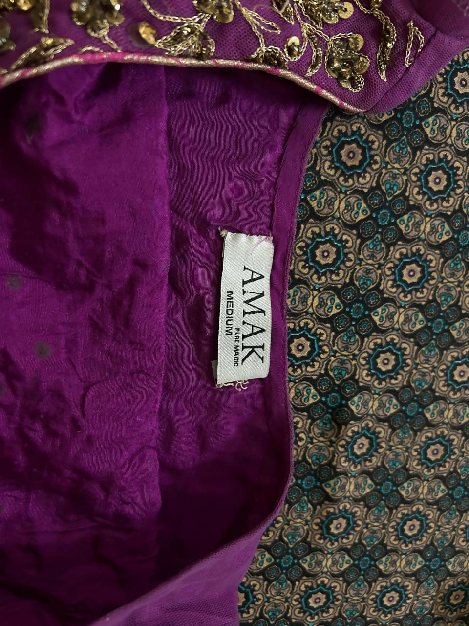 | MATERIAL & MEASUREMENT | Net and organza Size written (MEDIUM) but fits to XS to S SHOULDER: 13.5 CHEST: 17 HIP: 15 LENGTH: 42 |