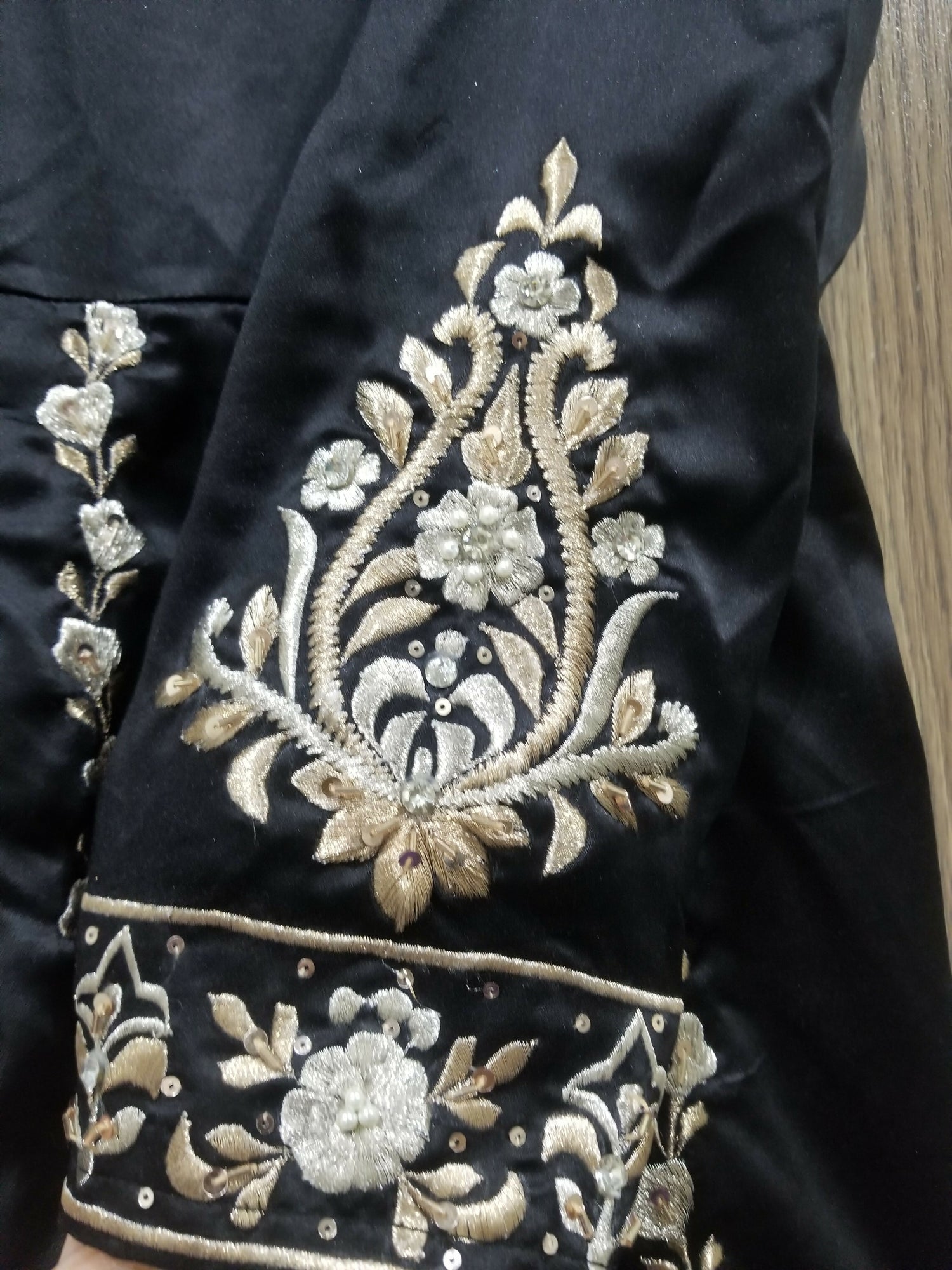 | MATERIAL & MEASUREMENT | Material : Silk frock Measurement : Length- 47 inches Chest-21 Sleeves-20.5 Frock flare-65 |