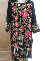 | MATERIAL & MEASUREMENT | Brand:Bareeze Embroidered velvet shirt and trouser Chest:18.5 Hips:20 Length:40 Sleeves:20 Trouser length:36 |