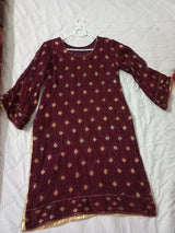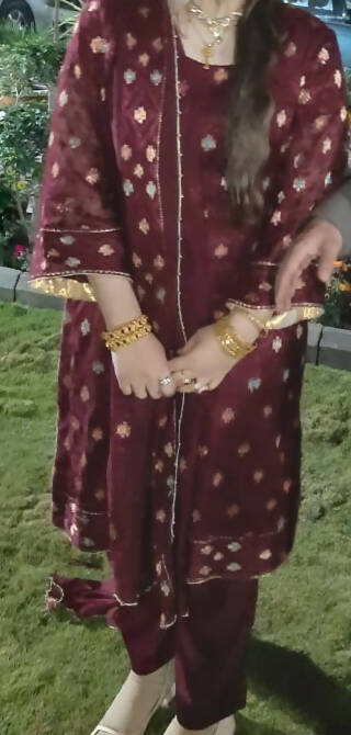 Bareeze | Cotton Net 3 Pc Suit | Women Branded Formals | Medium | Worn Once - Bareeze / Maroon / Cotton net is backordered and will ship as soon as it is back in stock.