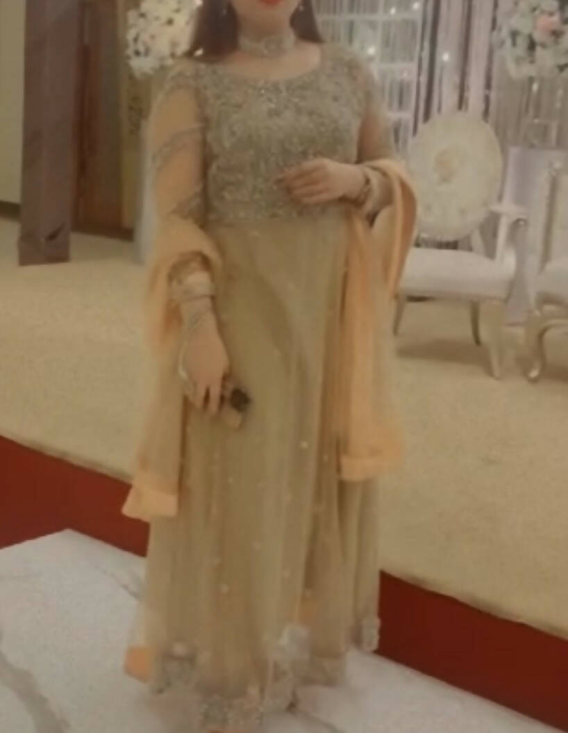 | MATERIAL & MEASUREMENT | Net maxi Dabka pearl work Chest 22 Length 55 |