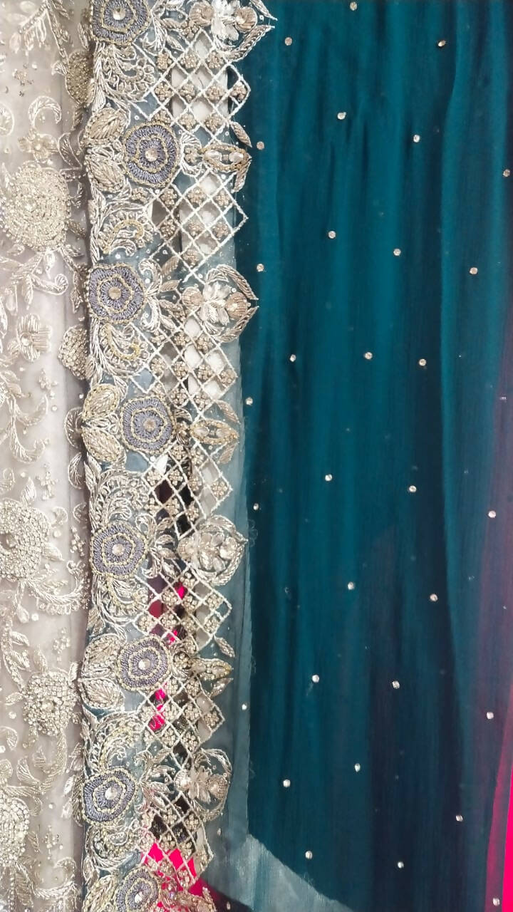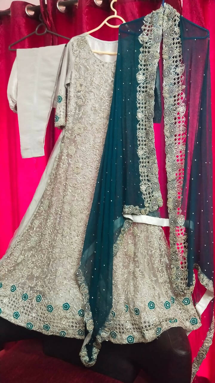 Fabric / Material: Net long maxi with silk lining with elegant chiffon dupatta and Capri .